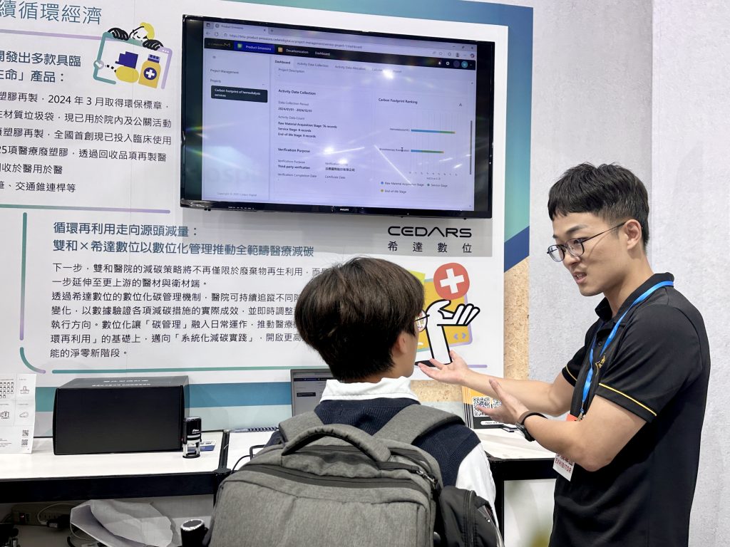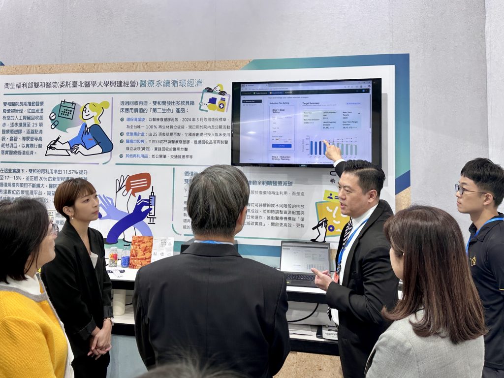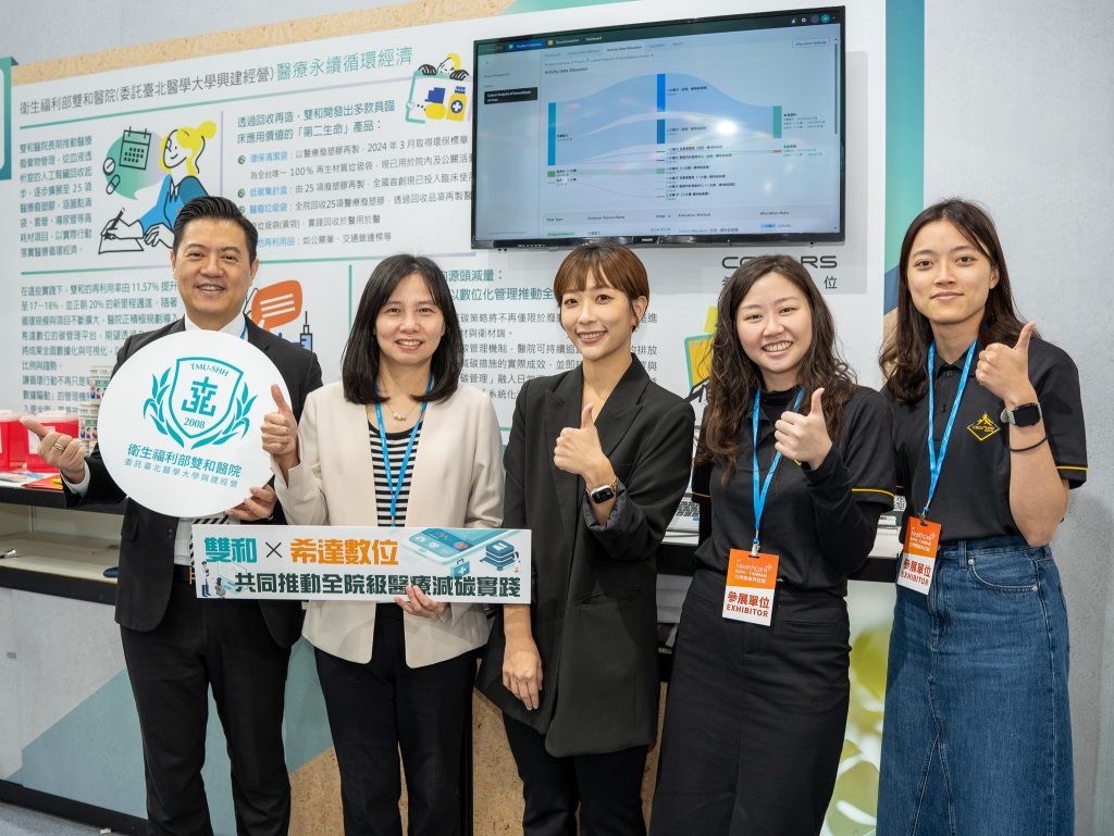 在 2025 台灣醫療科技展中,雙和醫院以「醫療永續循環經濟 × AI 資料治理」為核心主題,展示院內從廢棄物管理、耗材再利用、能源使用優化到碳排盤查的治理成果,逐步建構智慧化與透明化的永續治理架構。本次展區由雙和醫院攜手新加坡商希達數位(Cedars Digital)合作呈現,吸引衛生福利部、資策會、醫策會等單位代表到場交流,顯示智慧綠色醫院已成為醫療數位轉型的重要方向。